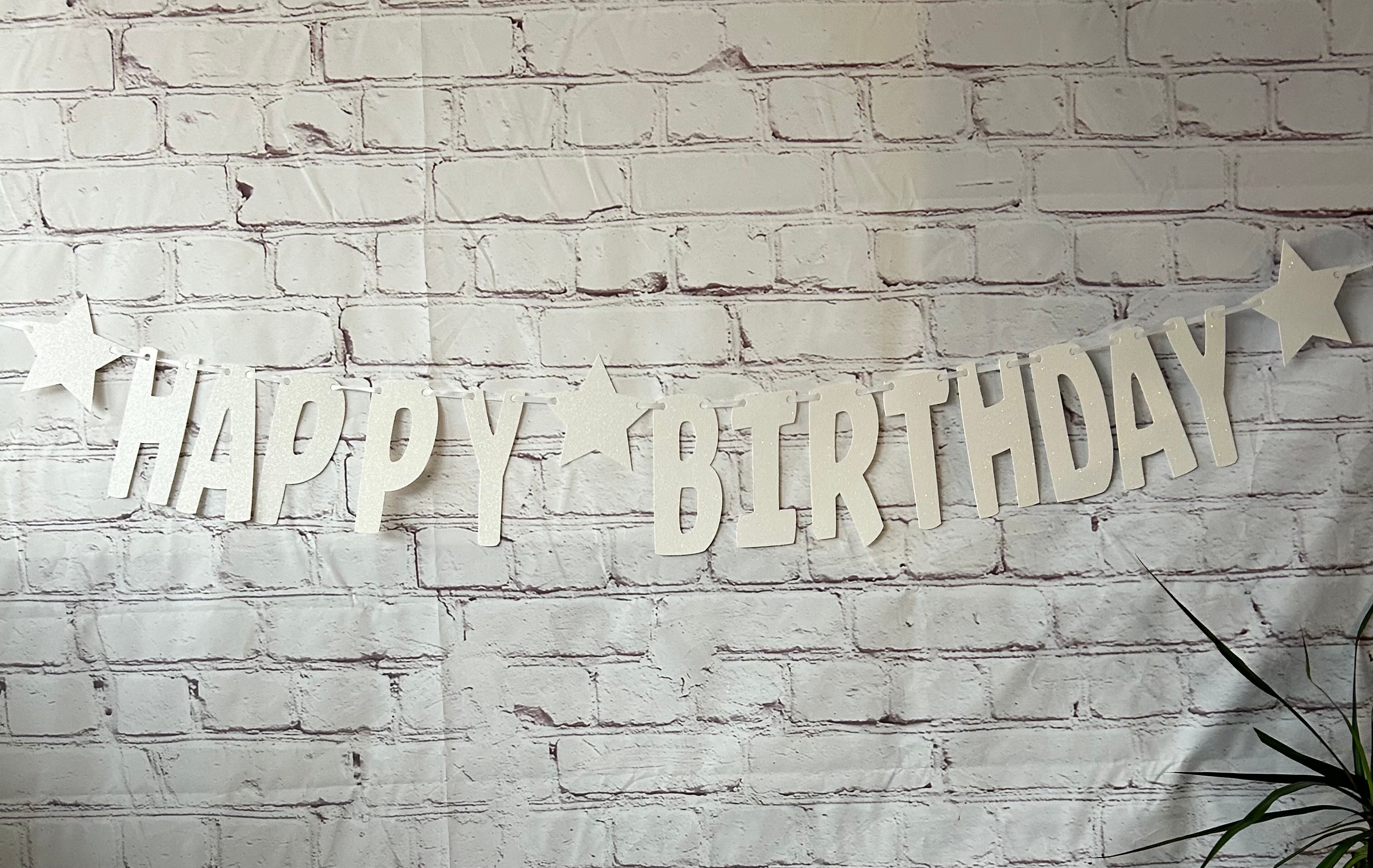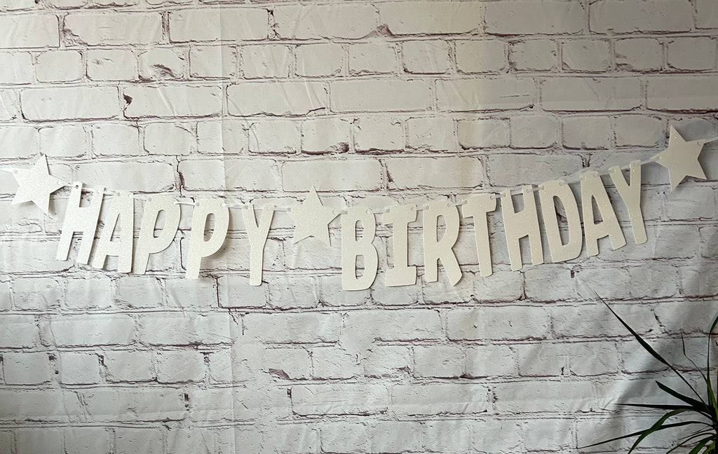 Happy Birthday Glitter Card Letter Banner - White